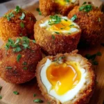 Voilà, tu as cuisiné des Scotch Eggs Croustillants au Cœur Fondant comme un vrai chef étoilé. C’est vraiment l’une de ces recettes qui te rendra célèbre lors des dîners entre amis ou même des repas à la maison en solo (hey, toi et les œufs, c’est un peu un rendez-vous amoureux). Partage-les, savoure-les, et profite de chaque bouchée. Allez, à ta santé et à ta cuisine, rockstar ! 🍳🎉