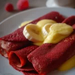 Des crêpes red velvet légères et chocolatées qui ajoutent une touche spectaculaire à votre petit déjeuner ou dessert.