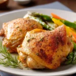 Des cuisses de poulet rôties savoureuses avec une peau croustillante et une viande juteuse, prêtes en un rien de temps.