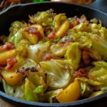A comforting and delicious stir-fry combining crisp cabbage, creamy potatoes, and crispy bacon.