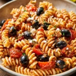 Salade de Pâtes au Pesto Rouge et Olives Noires