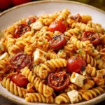 Savais-tu que cette salade de pâtes a le pouvoir de transformer un repas ordinaire en un festin de fête? Oui, vraiment! C’est comme si tu avais pris toutes les meilleures saveurs de l’été et que tu les avais enfermées dans un bol. La combinaison du pesto rouge avec les tomates cerises juteuses crée un mélange qui charme même les papilles les plus difficiles. Ça me rappelle mes journées d’été passées au bord de la piscine, à grignoter cette salade cool et à profiter du soleil. En plus, tu peux la préparer en un rien de temps—un vrai sauveur pour les soirs occupés!