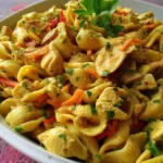 Écoute, cette salade, c’est le repas parfait pour les jours où tu veux impressionner, mais sans te blesser le cerveau. En gros, c’est comme si la cuisine parfaite se moquait de nous dans le bon sens. Des pâtes crémeuses, du poulet tendre et une sauce au curry savoureuse qui te fera rêver de vacances à la plage : c’est tout ce que tu peux vouloir.