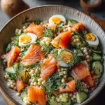 Une salade légère et savoureuse de perles de blé avec du saumon fumé, parfaite pour toutes les occasions.