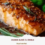 Franchement, qui pourrait dire non à du saumon doux et moelleux enrobé d’un glaçage à l’érable ? En plus, ce plat fait un clin d’œil à l’automne et à ces douces soirées où l’on veut juste s’emmitoufler sur le canapé, mais avec un petit côté gourmet. Il apporte une touche de réconfort à chaque bouchée. Vous allez vous rappeler de ces moments chaleureux passés avec votre famille, où la pièce embaumait le sirop d’érable et le saumon grillé. Parce qu’honnêtement, qui ne désire pas que sa cuisine sente bon, même quand il fait moche dehors ?