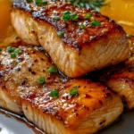 Dresse et savoure : Dispose le saumon sur une assiette, nappe-le du jus caramélisé et parsème de ciboulette. Scène finale : un plat qui a l’air comme si vous aviez passé la journée dans une cuisine étoilée.