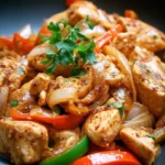 Un plat savoureux de poulet juteux avec des poivrons croquants et des oignons caramélisés, parfait pour impressionner famille et amis.