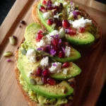 Premièrement, parlons des associations de saveurs. L’avocat crémeux rencontre la feta salée, et les graines de grenade ajoutent une touche parfaite de croquant sucré. C’est comme une petite fête sur une tartine qui vous dit « je t’aime » à chaque bouchée. En gros, c’est le genre de plat qui vous fera aimer cuisiner, même si vous avez l’impression que vos talents se limitent à faire chauffer des nouilles.