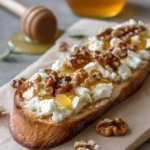 A simple yet luxurious tartine featuring creamy goat cheese, honey, and crunchy walnuts, perfect for sharing with friends or enjoying at brunch.