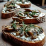 Qu’est-ce qui rend ces tartines si spéciales ? Eh bien, déjà, on parle de pain croustillant, de champignons juteux, de fromage frais crémeux, et un petit tour de poivre pour la saveur, le tout réuni comme une équipe de choc ! Ces tartines sont parfaites pour un dîner léger ou même un brunch un peu fancy. Franchement, chaque bouchée te fera oublier que tu n’as passé que 20 minutes dans ta cuisine. Et si tu sais faire du pain grillé, tu peux faire ça. C’est si simple, que même ton ami le plus maladroit en cuisine pourrait briller comme une étoile Michelin !