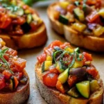 Tartines Garnies de Ratatouille sur Pain Grillé à l’Ail