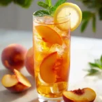 Mots clés: thé glacé, pêche, citron, boisson d'été, rafraîchissant