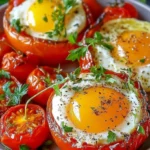 Savourez des tomates rôties, juteuses et sucrées, garnies d’œufs crémeux pour un plat réconfortant idéal pour le brunch ou un dîner.