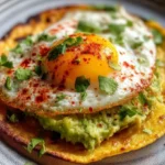 Une tortilla croustillante garnie d’avocat crémeux et d’un œuf coulant, parfaite pour impressionner vos amis lors d’un brunch.