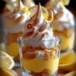 Des verrines au lemon curd avec une base de biscuits croustillants, surmontées d’une meringue dorée et fondante.