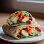 Un wrap savoureux et rapide rempli de poulet tendre, de légumes croquants et d’une sauce crémeuse.