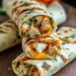 Dorure des wraps : Chauffe une poêle propre à feu moyen. Dépose les wraps, pliure vers le bas, et fais-les dorer pendant 1 à 2 minutes de chaque côté, jusqu’à ce que le fromage soit fondu et que la tortilla soit croustillante. C’est le moment où tu fais semblant que tu es un chef à la télé.